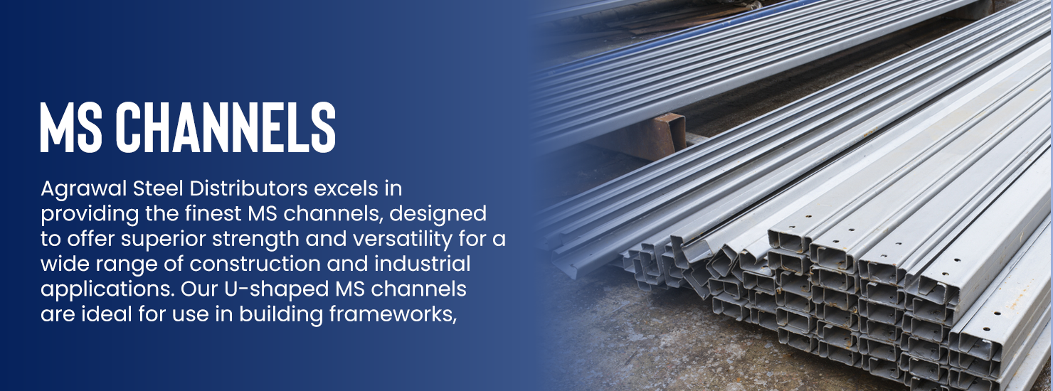 Agrawal Steel Distributors excels in providing the finest MS channels, designed to offer superior strength and versatility for a wide range of construction and industrial applications. Our U-shaped MS channels are ideal for use in building frameworks, support structures, and as tracks or rails, delivering outstanding load-bearing capabilities. Sourced from trusted manufacturers, our channels are crafted to meet industry standards, ensuring durability and precision in every piece. Whether you’re working on a commercial complex or an industrial facility, rely on Agrawal Steel Company for the best MS channels that ensure safety, stability, and longevity.