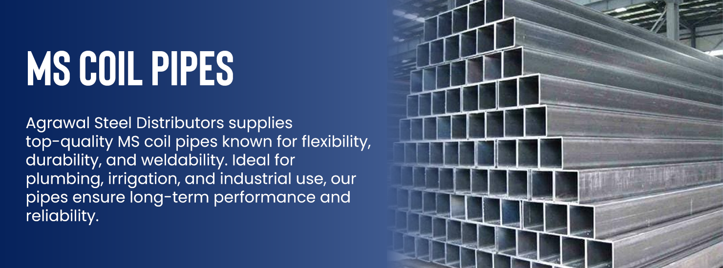 When it comes to MS coil pipes, Agrawal Steel Distributors stands out as the premier supplier of top-quality products tailored for diverse applications.Our MS coil pipes are renowned for their flexibility, excellent weldability, and high durability, making them the preferred choice for shed construction and facades. These pipes offer exceptional strength-to-weight ratios, seamless integration into diverse structural designs, and cost-effective performance, ensuring long-lasting stability and aesthetic appeal across residential, commercial, and industrial applications, even in challenging environmental conditions. Crafted from premium mild steel, these pipes offer resistance to wear and tear, ensuring long-term performance even under challenging conditions. Trust Agrawal Steel Distributors to provide the best MS coil pipes, delivering reliability and efficiency to your projects, no matter the scale.